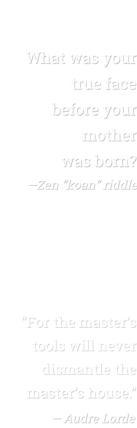 Start or return to Practicing Justice 1.0 for work with a small, robust group where you'll meet both sameness and difference. If you're in an acute phase of development and need focused sessions, Wisdom Sessions are your jam.